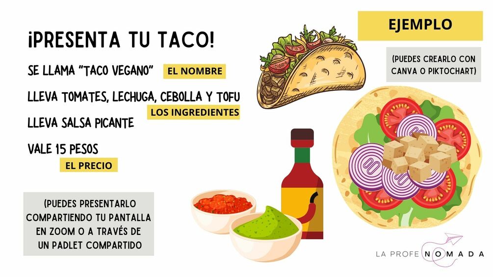 Unidad didáctica sobre cómo crear un taco en la clase de ELE online (Duración de la clase 1 hora)
